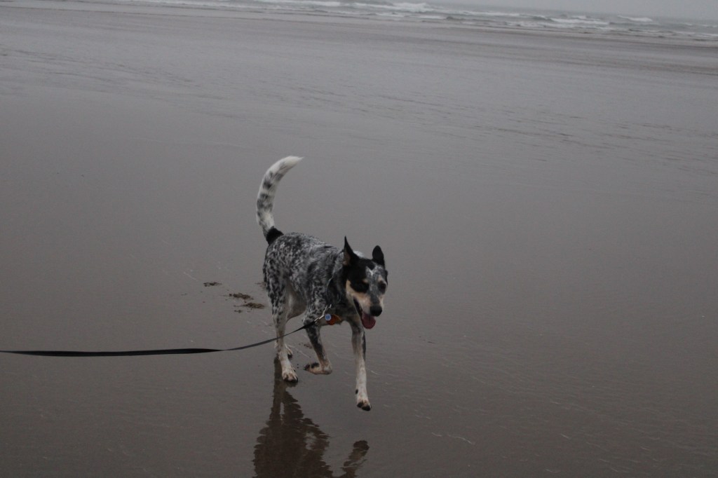 All three animals got their first look at the ocean and Kida got to spend a rainy afternoon playing in the Pacific, she was not prepared for nor did she appreciate the taste of the salt water.