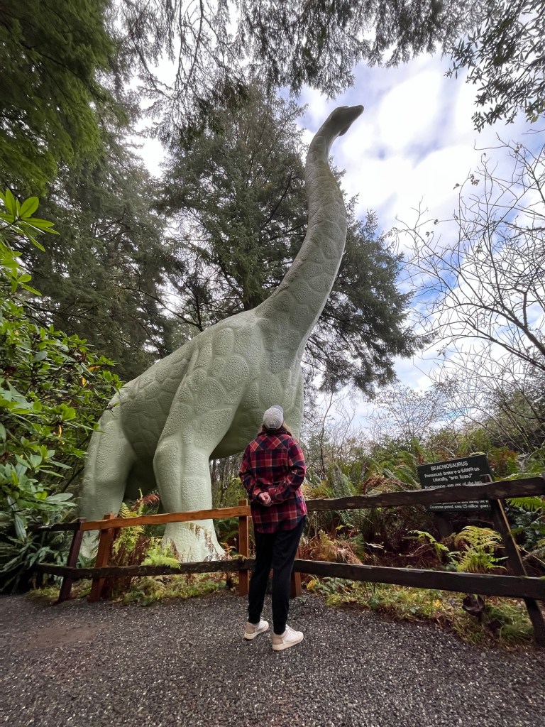 Mere miles later we stopped at the Prehistoric Garden, while it was already pre planned it was nice to honor the lizard by walking through rainforest trails with scale models of dinosaurs. Little known fact about Meghan, while on a trip through Yellowstone with Sierra’s family (sans Sierra due to Covid) she discovered a dinosaur tooth at an archeological dig site and was somehow able to keep it. Ever since she’s been quite the dinosaur buff and was most excited for this particular stop. We had a lovely chat with the woman running the park, and I think she could sense Meghan’s excitement and enjoyed our tales of our current journey because she gifted her the five dollar sticker she was going to buy for free, which was incredibly kind of her.