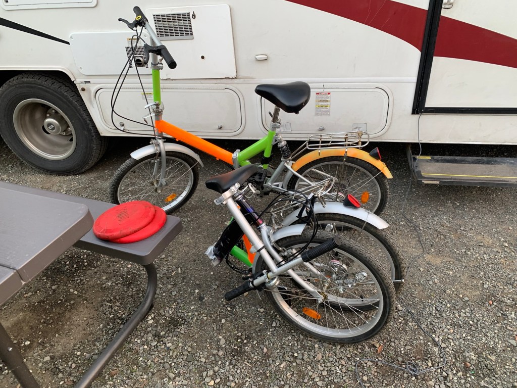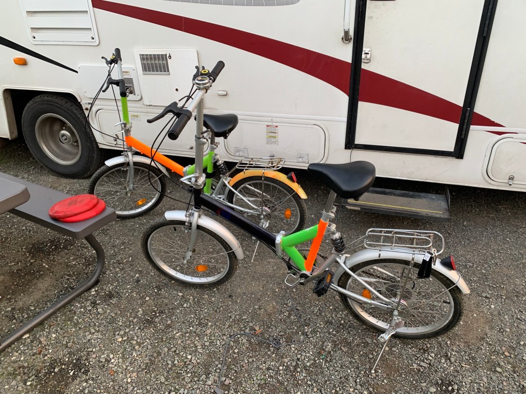 Near Portland I found two folding bikes on Facebook Market place and we scooped them up on our way to California. They fit perfectly in our back storage area, and I can now confirm are stupid fun to ride around on. I imagine given the numerous looks and grins we received, we look similar to circus bears riding bicycles while zipping around town on these fine machines. Nevertheless we completed our grocery run, popped into Home Depot, and I pit stopped for a hair cut while in town.