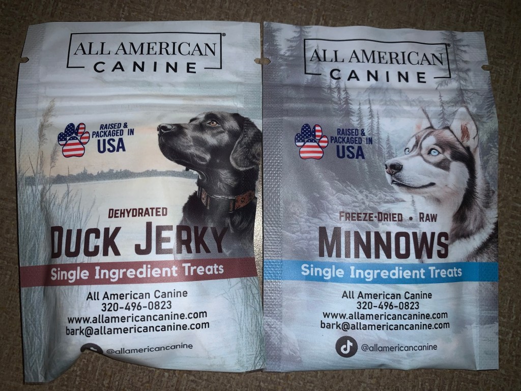As I was setting up our site I struck up a conversation with our neighbor. He was a partner in a start up dog treat company based out of Finlayson MN! We met his chihuahua Apple and he gifted Kida, Maggie, and Charlie multiple bags of treats! All American Canine was his company making single ingredient freeze dried treats, we can confirm the cats and dog absolutely love the minnows!