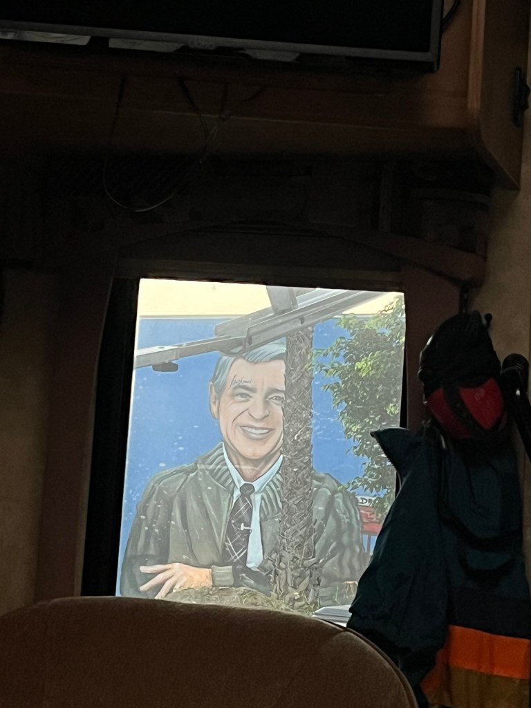 We arrived at the cutest RV park we have found yet, fully Hollywood themed and chalked full of local art, set props, and murals. The RV park owner was a character and a half, he was very kind and so proud of the community he had created over the last 50 years. He gave us a tour of the grounds and shared many stories and pictures, including one of Jeff Goldblum getting bitten by a potbelly pig in the RV park and him cooking on the master chef set which was located nextdoor to the RV park.