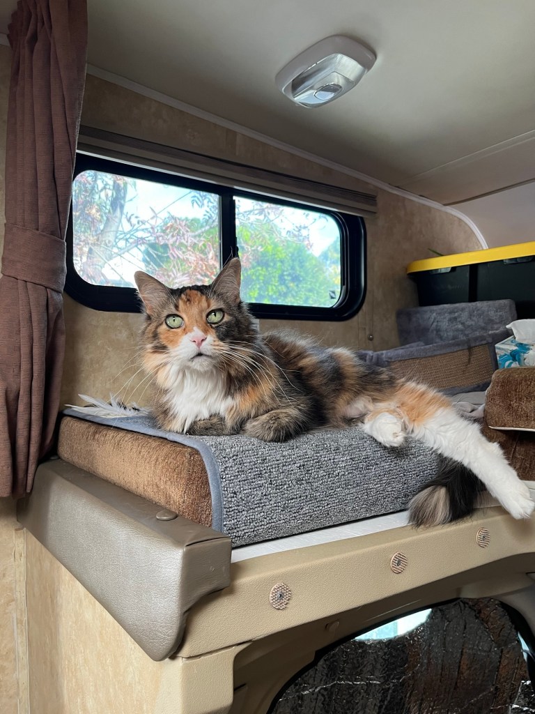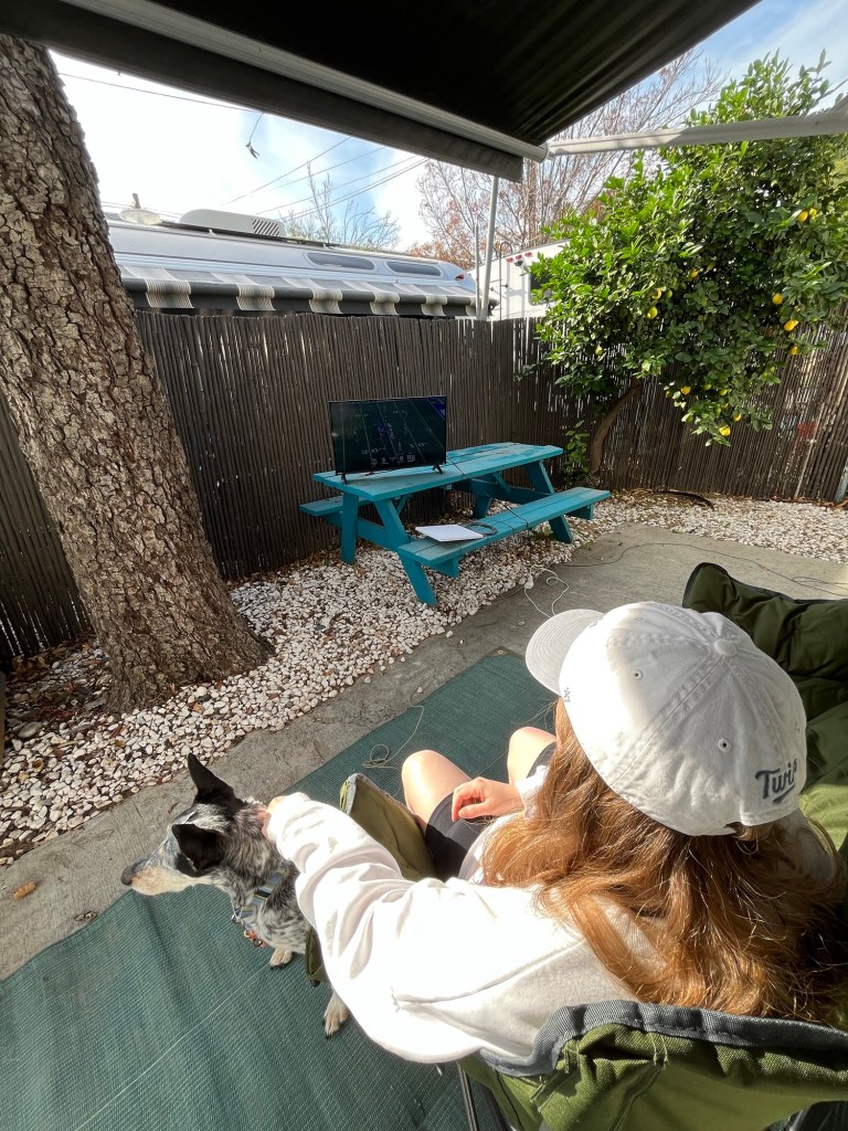 We stayed for a few days in LA and ended up renting a little Fiat that we affectionately named Zippy. With our new found maneuverability Meghan plotted a course for us to get a full tour of the LA area. We wandered through an Erewhon, visited Beverly Hills, drove Sunset and Ventura Blvd, saw the Hollywood sign, snagged lunch at Porto’s, a restaurant that’s been on Meghan’s list of must eats for years, and finished the day running some errands. I was informed I got to plan the next day, I had one simple request, a nap. We ate breakfast walked the dog around the park and finally I took my first nap since leaving Duluth. To preface said nap, our cats, despite attempting education in geography lessons and the history of daylight savings, display no evidence of learning, remain argumentative and combative, and insistent on waking us up at 4am for breakfast. Meghan possesses an uncanny ability to simply go back to sleep, I unfortunately do not. Post nap we hit the dog park for Kida and attempted the agility course, she was far more interested in sniffing but eventually, kinda, completed the course. The next day dressed in our Sunday best (Vikings apparel) we set up our TV outside and enjoyed Sunday football in December while getting some sun. Monday we packed up and braved the LA traffic again in the RV, and headed to our Christmas destination, Palm Springs.