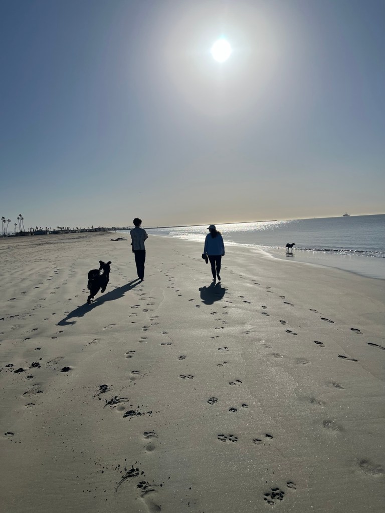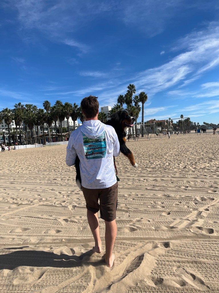 Hannah, Tanner, and Hans had discovered the Grove during their adventures, itβs a neat dog friendly outdoor shopping center, it has a farmer market attached to it, a dancing fountain designed by the same person who did the fountain at the Bellagio, and a trolly designed by the last imagineer hired by Walt Disney himself. Most importantly though they had a coffee shop, La La Land. The entire group rapidly formed an obsession with La La Land and it became a near daily fixture. We enjoyed a trip to Santa Monica with everyone where we wandered the pier and found yet again Meghanβs favorite restaurant Din Tai Fung.