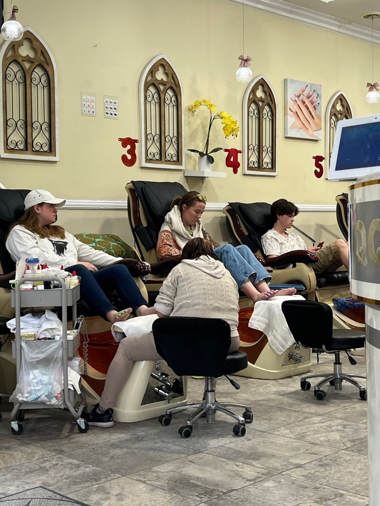 Hans and Brady returned, Brady had to fly out the next day for work but we enjoyed a night of conversation and dinner before he left early the next morning. Hannah flew home shortly after, of course before that, more trips to the grove were made and we went on a group trip for pedicures.