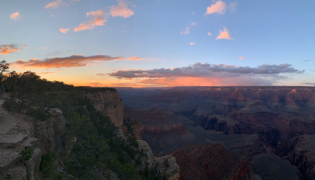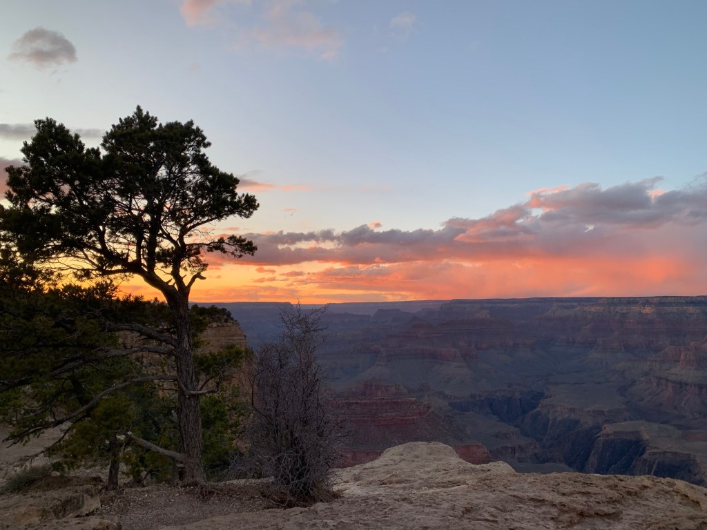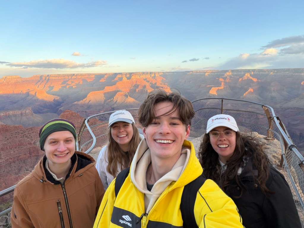 The Grand Canyon was our next exploration the following day. Sonya, Meghan, and I arrived just after noon, hiked a small portion of the bright angel trail, ate our packed lunch, and wandered through various gift shops and galleries before meeting up with Hans and Theo again and walking a portion of the south rim trail. We stayed for sunset which was absolutely incredible. The sheer vastness of the Grand Canyon is astonishing and almost disorienting to walk next to, the landscape and views drastically change every few feet. Prior to arriving here I had spoken with a retired park ranger who told me the average visitor spends approximately 18 minutes at the Grand Canyon, we shattered that statistic and concluded the average person is severely missing out.