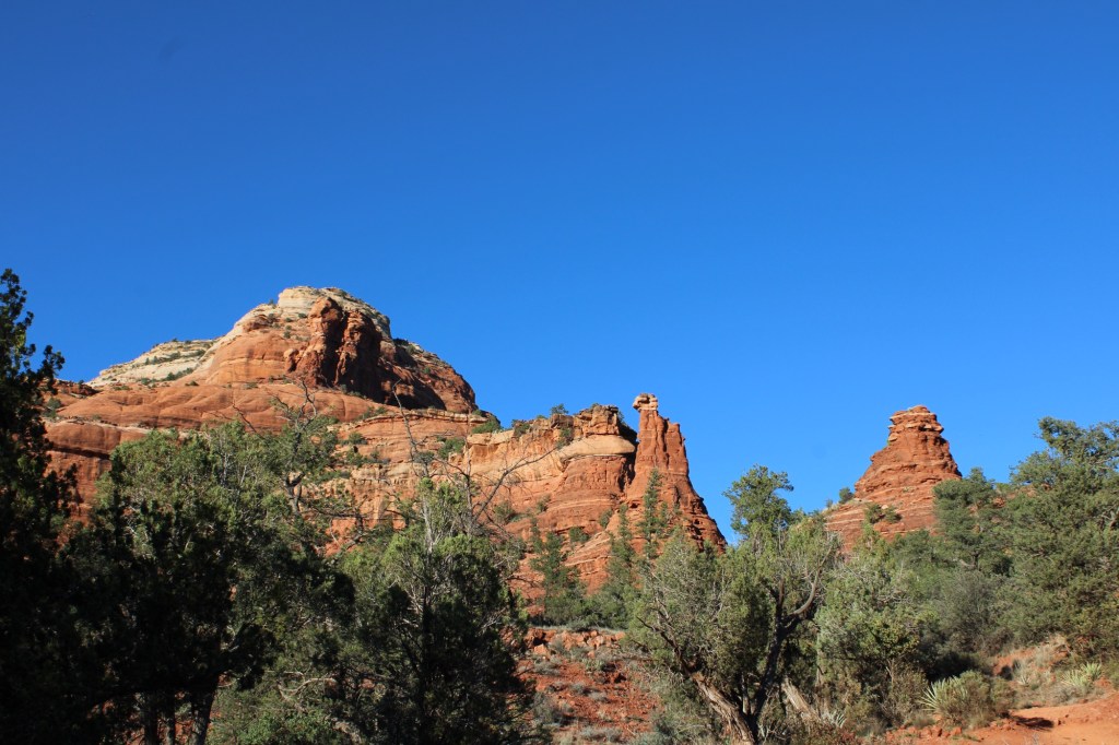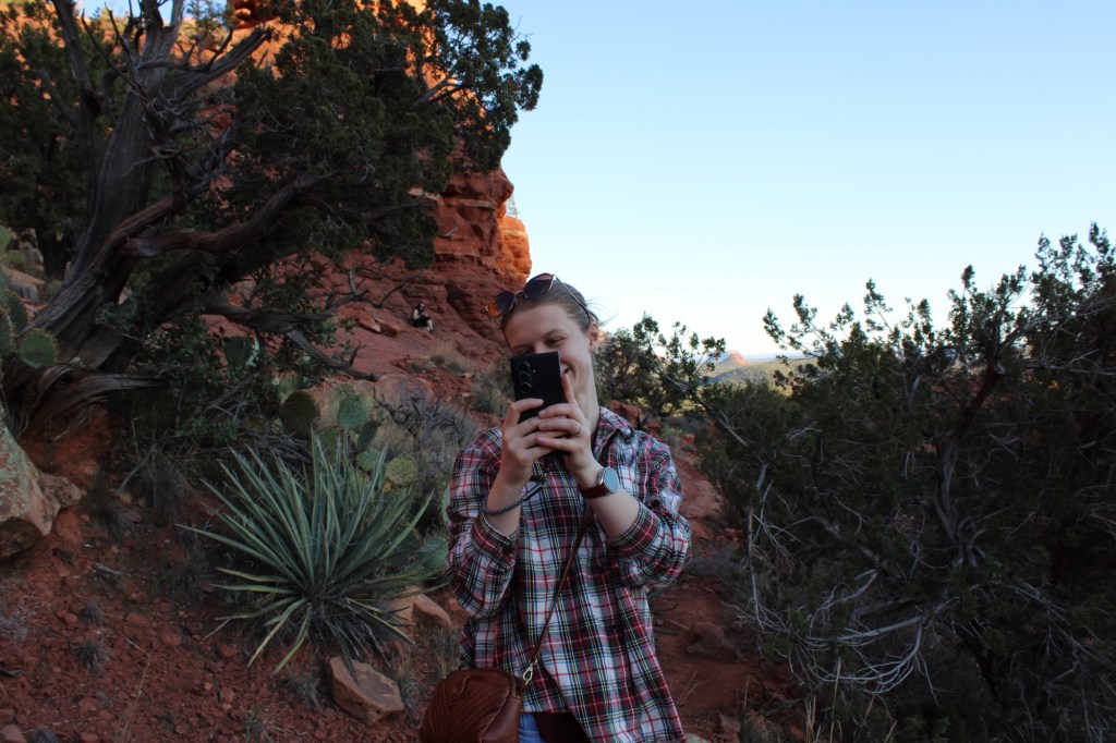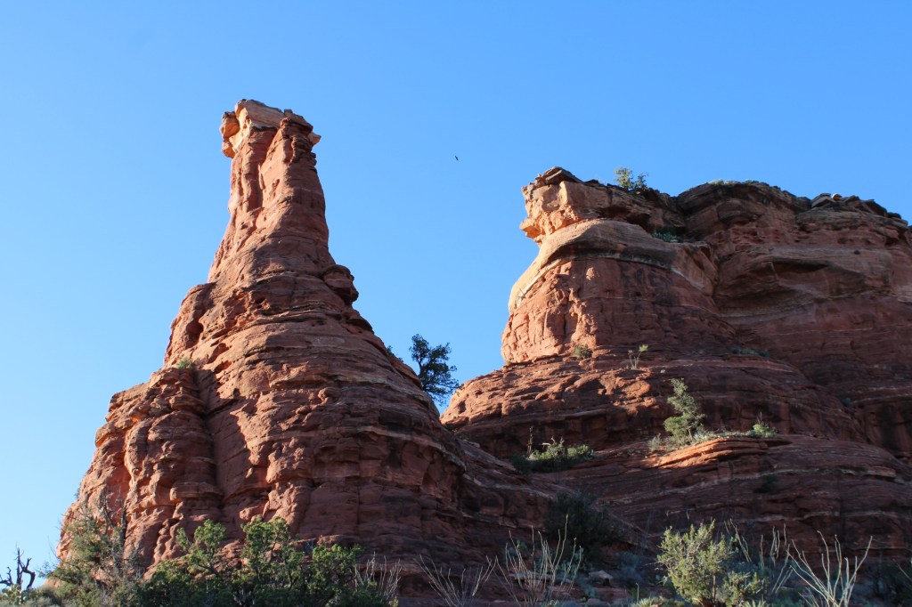 The following day we had to pivot plans due to forest road closures and ended up spending the day exploring Sedona. We packed a picnic lunch, chairs and went in search of a specific “Jeep trail” that was reported to have incredible views of Sedona. After a wee bit of trial and error we found the trail, Meghan giddy as can be enjoyed crawling along the rough road which ended with a small hike up a hill and stunning views of the surrounding red rock. We ate our picnic lunch here and headed to our next hiking spot when the party was crashed by a jeep tour group. The next hike was short and sweet, and lead to some incredible red rock features.