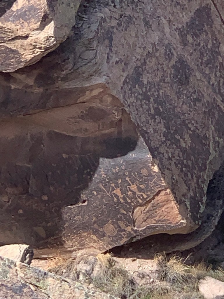 The park is also the home to petroglyphs and ruins from Puerco Pueblo. The village that was occupied around 1250-1380 once had around 100 rooms, used as homes, ceremonial buildings, and food storage. They were built from sandstone and petrified wood and held together with mud mortar. Newspaper rock was one of our stops while in the park. Hundreds of petroglyphs are craved into to the rock depicting humans, animals, and various geometric shapes. I know significantly less about this portion of the parks history but it was very cool to see and learn little snippets about.